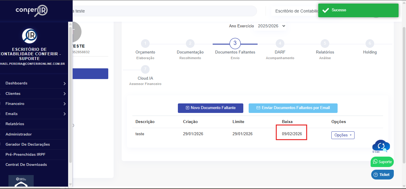 Obs: É importante que o e-mail do cliente esteja cadastrado corretamente.