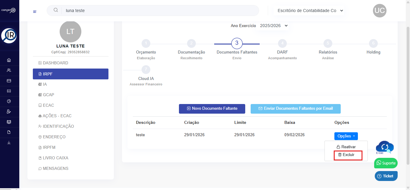 2- Clicar em Checklist DIRPF (Digital)