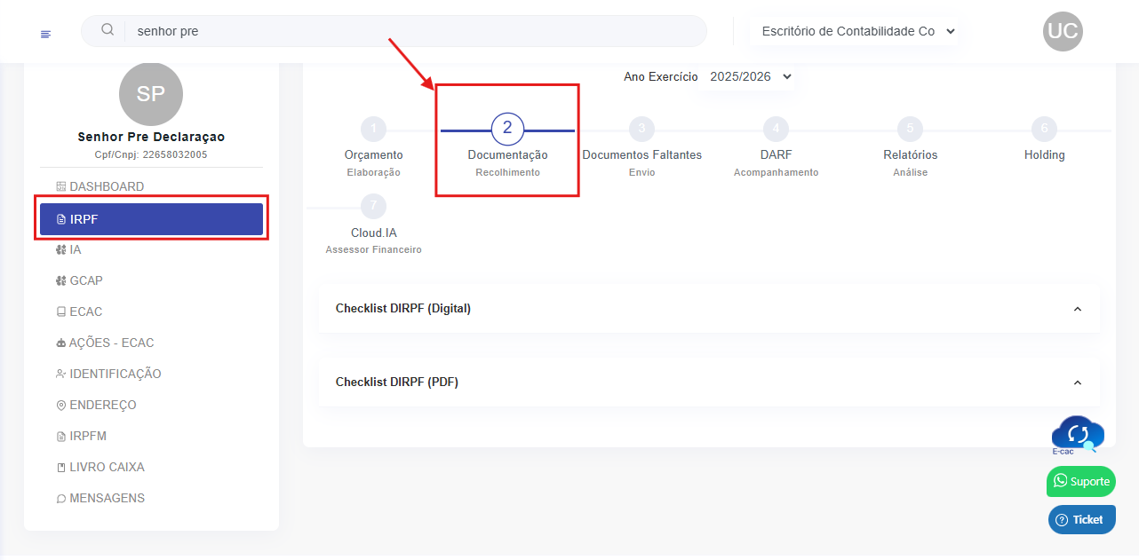 2- Clicar em Checklist DIRPF (Digital)
