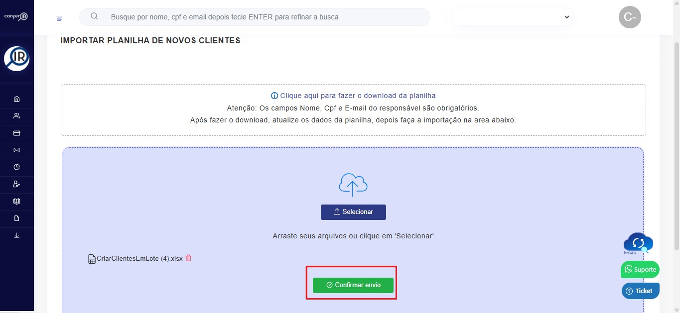 5- Após o envio, Confirme e aguarde o sistema ler a planilha.
