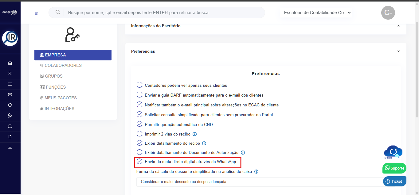 Passo 2: Habilitar o envio da Mala Direta Digital via WhatsApp