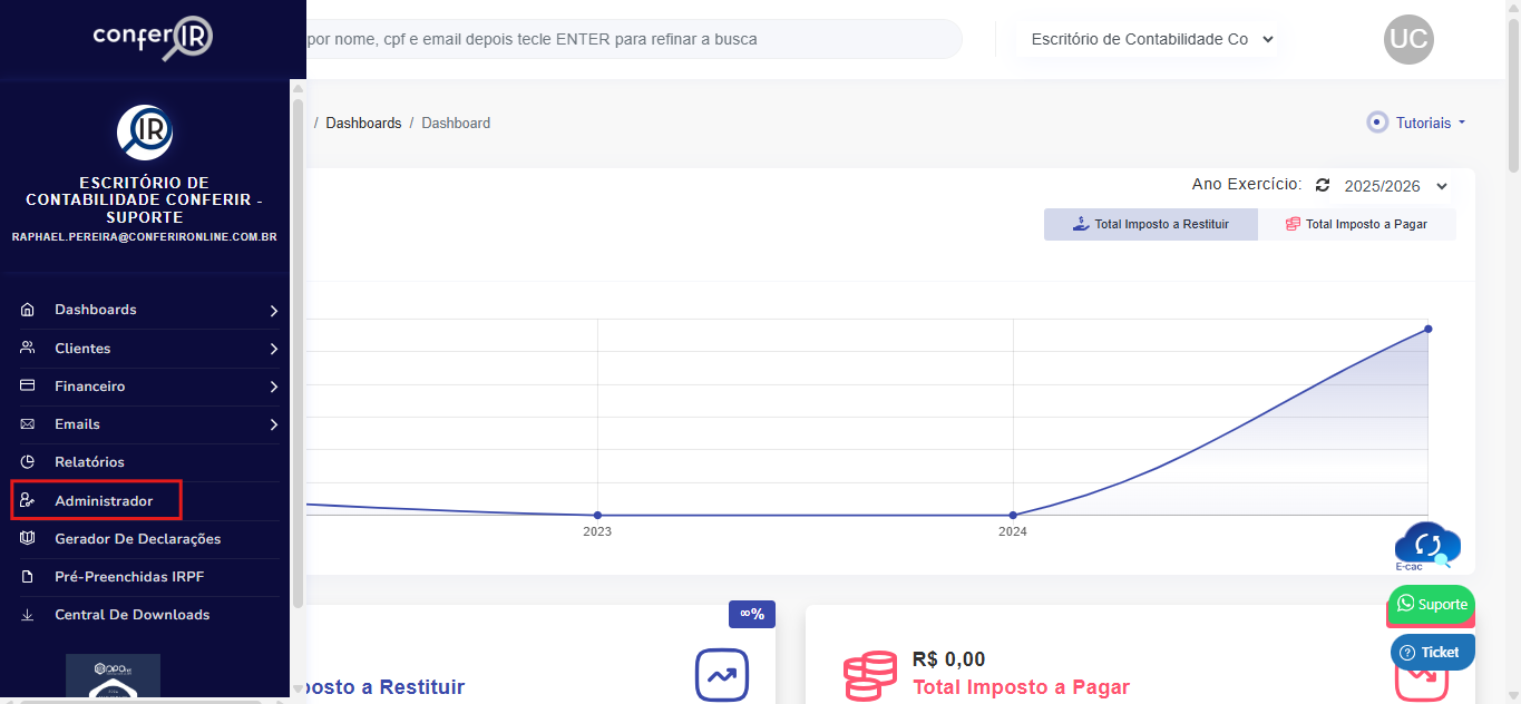 No menu lateral esquerdo da plataforma, acesse a aba Administrador.