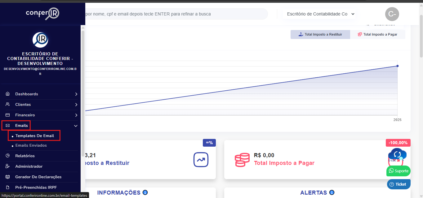 Dentro de E-mails, acesse a aba Templates de e-mail.