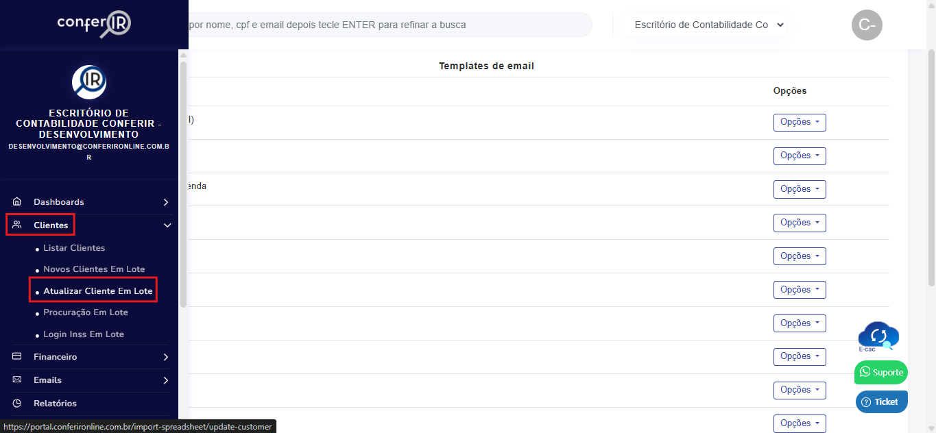 Dentro de Clientes, clique em Atualizar cliente em lote.